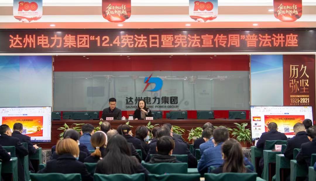 为认真贯彻落实党的十九届六中全会和第九次全国法治宣传教育工作会议精神,深入学习宣传习近平法治思想,大力弘扬宪法精神,进一步提升集团干部职工依法治企、合规管理能力。2021年12月3日上午,集团公司举办了“12.4宪法日暨宪法宣传周”普法讲座,特邀四川省律师刑事辩论赛“最佳辩手”、达州市“扫黑除恶”先进个人、四川奥飞律师事务所执业律师张瑞丰主讲授课。