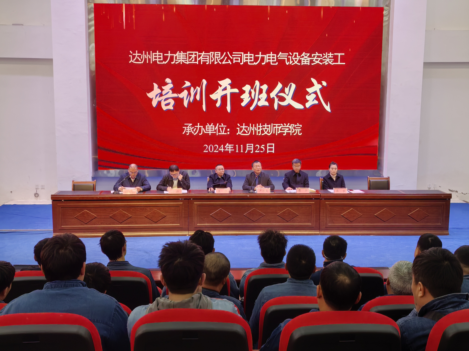为进一步巩固强化校企合作交流平台,深入推进产教融合办学模式和人才培养模式改革,11月25日上午,由达州技师学院承办的乐动网页版页面登录集团电力电气设备安装培训开班仪式,在达州技师学院学术报告厅举行。达州技师学院党委委员、副院长严继业主持仪式,乐动网页版页面登录集团有限公司党委副书记王梦出席仪式并讲话,达州市能源产业局运行调度科干部刘冬春对培训学员进行现场点名。