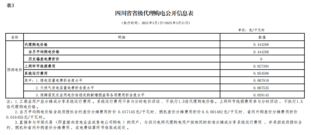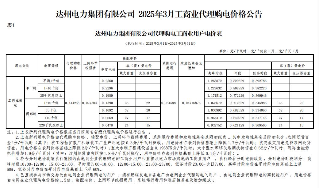 乐动网页版页面登录集团有限公司2025年3月工商业代理购电价格公告